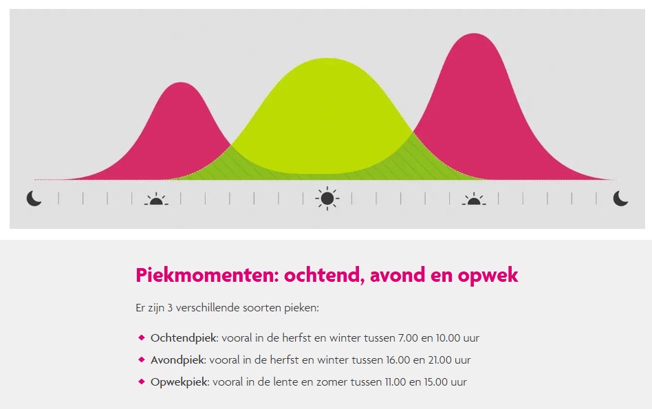 Voorbeeld: als 200 huishoudens hun droger uitstellen tot buiten de piek, kun je van die energie 62 huishoudens een dag lang van stroom voorzien. Steeds meer bedrijven, gemeenten en huishoudens dragen actief bij aan het verlagen van de pieken op het stroomnet door stroom zo veel mogelijk buiten de piek te gebruiken en woningbouwprojecten netbewust te ontwerpen.