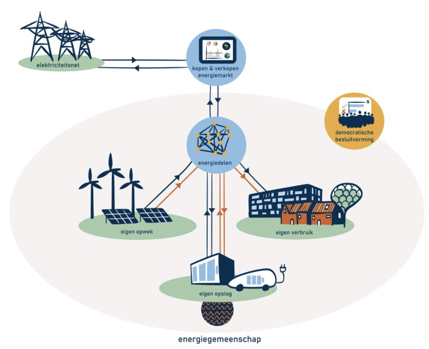 De nieuwe energiewet gaat mogelijkheden geven om het overschot aan elektriciteit van de zonnepaneleneigenaar te delen (verkopen) met huishoudens of winkels die geen zonnepanelen hebben.